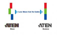 To remedy this skew distortion, ATEN has developed the Low skew Cat 5e cable 2L-2801. This 305 m/ 1000 ft, high performance Cat 5e cable is suitable for the audio and video transmission of a wide range of video and KVM Extenders. This low skew cable is specifi cally designed for RGB video applications such as digital signage, and supports video transmissions to longer distances than traditional twisted pair Cat 5e cable does. To eliminate blur and bleeding images and to ensure the clarity of your video transmissions in all video-related applications, use 2L-2801 Low Skew Cat 5e Cable.