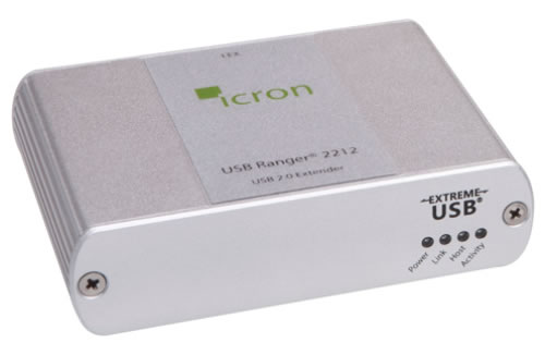 The Icron IC2212 USB extender kit is a two port, remote powered, USB 2.0 extension solution, enabling USB 2.0 connections at up to 480Mbps over 100m/330ft of Cat 5 cabling.
