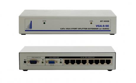 8 port VGA extender / splitter with audio and monitor output. Extends VGA and audio signals up to 300 meters