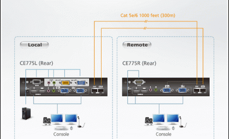 ATEN CE775 Dual View KVM Extenders with Deskew function allows access to a computer system from a remote Dual View console up to 300 m away. The dual view function provides support for two displays, allowing the video output to seamlessly display on two monitors. Its advanced PC Wake - Up feature that allows you simply uses a push button from the remote dual view console to wake a PC at the local site via RS-232, no need to go to the local site to wake up the PC. It eliminates the need for traveling back and forth between the local computer and remote console, effi cient and flexible.