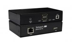 The DCX-XT-2P is a Dual Head HDMI (3840 x 2160 @ 30 Hz), USB 2.0, USB keyboard-mouse and stereo audio extender, sending signals up to 100 m (330 ft) away over a single conventional and inexpensive CAT5/5e/6 cable. This new technology is superior to older HDMI extenders that require a special CAT6 shielded cable to go a short distance.