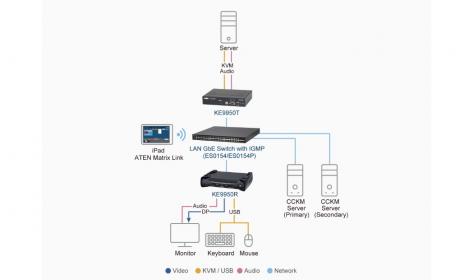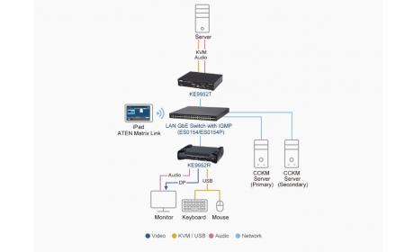 The KE9950 / KE9952 4K DisplayPort Single Display KVM over IP Extender consists of a high performance IP-based transmitter (KE9950T / KE9952T) that connects to the computer and receiver (KE9950R / KE9952R) that provides console access from a separate location. The KE9950 / KE9952 allows access to a computer system from a remote USB console (USB keyboard, USB mouse, DisplayPort monitor) over an intranet, enabling users to locate computers in a secure and temperature controlled environment, which is isolated from users’ workstation.