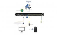 The HT12xx rack mount KVM over IP Switch is a control unit that allows secure access to 8/16/32 computers from a single KVM console.