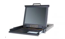 Featuring an integrated LCD monitor, keyboard, and touchpad in a 1U rack-mountable housing, the HT17xx LCD KVM over IP Switch is a control unit that allows secure access to 8/16/24/32 computers from a single KVM console.