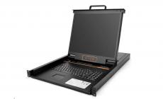 Featuring an integrated LCD monitor, keyboard, and touchpad in a 1U rack-mountable housing, the HT59xx series LCD KVM over IP Switch is a control unit that allows secure access to 8 / 16 / 24 / 32 computers from a single KVM console.