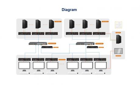 The KFH186K IP KVM matrix extenders are highly optimized KVM extenders. The point-to-point connection supports transmission distance of 120m, and resolution up to 3840×2160@60Hz. This series of extenders can be connected to an 1G network switch to form a matrix switching system, which supports point-to-point (P2P) mode and matrix (Matrix) mode. The matrix switching system composed of extenders supports up to 9999 nodes by using a centralized management software, and it can support up to 40 nodes without using a centralized management software. It can connect multiple signal sources (such as servers, workstations, cameras and video walls).