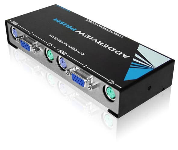 The AdderView Prism is a compact 'reverse KVM switch' that enables you to connect multiple KVM (Keyboard, Video monitor and Mouse) consoles to a single computer or KVM Switch. Connecting the Prism to a computer expands the number of KVM console connections, allowing you to control your computer from up to four different locations. The Prism is also ideal for connecting to the front end of KVM switches to increase the number of consoles that can share access to the switch.