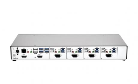 The ADDERView CCS-MV, a desktop multi-viewer switch, provides simultaneous, real-time 4K KVMA access of up to four computers from a single workstation. Users can instantly take control of the target computer by simply moving the mouse between windows, providing the experience of a single desktop.