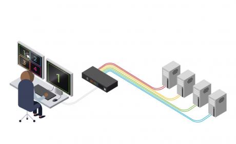 The ADDERView CCS-MV, a desktop multi-viewer switch, provides simultaneous, real-time 4K KVMA access of up to eight computers from a single workstation. Users can instantly take control of the target computer by simply moving the mouse between windows, providing the experience of a single desktop.