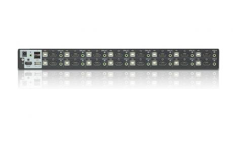 The Aten CS17916 16-port USB HDMI KVM Switch is a multi-purpose appliance that consolidates access and control of up to 16 HDMI computers from a single USB keyboard, USB mouse, and monitor console.
