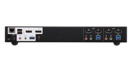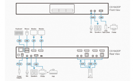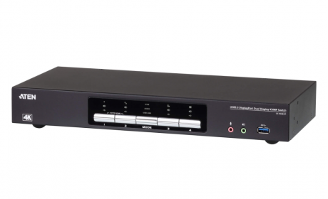 The ATEN CS1942DP / CS1944DP desktop KVM switch helps organize your desktop. Especially when managing a multimedia workstation at a large organization, the CS1942DP / CS1944DP provides you with instant access to two or four computers, all through a single USB keyboard, USB mouse and two DisplayPort monitors.