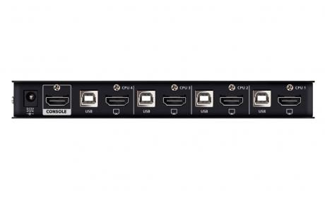The ATEN CS784H 4-Port USB 4K HDMI KVMP™ Switch enables users to control up to 4 computers with a single USB keyboard, mouse and HDMI monitor. The CS784H effectively reduces desktop clutter and minimizes the cost and complexity of multi-system setups.