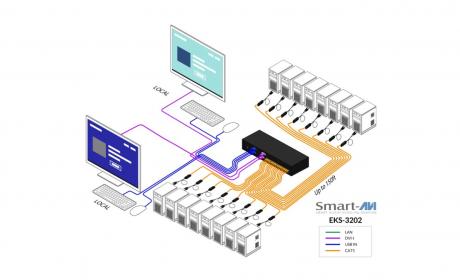 The EKS is an enterprise class KVM over IP switch that provides 2 users (2 local or 1 local and 1 remote) with BIOS level remote management of 16 (or 32) servers in a single switch.