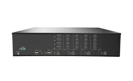 The SM-UHN-4Q (formerly UDHN-4Quad) is a dedicated multi-platform KVM Switch capable of managing up to 4 different computers through four monitors, USB keyboard and mouse, a set of speakers and USB devices like printers, memory devices, scanners, etc.