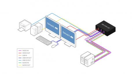 The SM-UVH-2D is a universal solution that supports both DisplayPort and HDMI sources and monitors. You can mix and match DP and HDMI PCs and displays across the same unit without compromise, solving a growing challenge in multi-format environments.