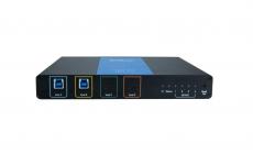 The Icron Polaris 7044 is a 4x4 USB 3-2-1 Matrix that empowers a host device to connect to and switch between multiple devices. Polaris supports USB 3 (5Gbps), USB 2.0, and USB 1.1 devices, while delivering up to 15W of power. With up to 24 possible configurations, it offers extremely flexible USB connectivity.