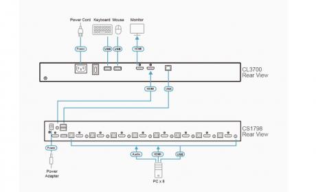The CL3700 features a port for an external USB mouse on the unit’s front panel, while ports for the second KVM console (USB keyboard / mouse and HDMI monitor) are provided on the rear panel.