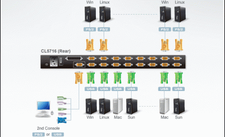 The Aten CL5716 17 or 19 inch LCD with integrated KVM Switch is a control unit that allows access to Eight computers from a single PS/2 or USB KVM (keyboard, video, and mouse) with 2nd console support.