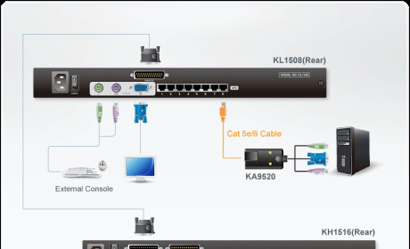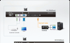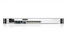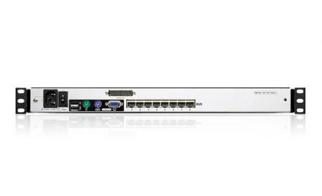 The Aten KL1508A Dual Rail LCD KVM Switch is a control unit that allows secure access to 8 computers from a single KVM (keyboard, video, and mouse) console. It consists of an integrated 17" or 19" LCD monitor, keyboard, and touchpad mouse in a 1U rack-mountable retractable sliding housing.