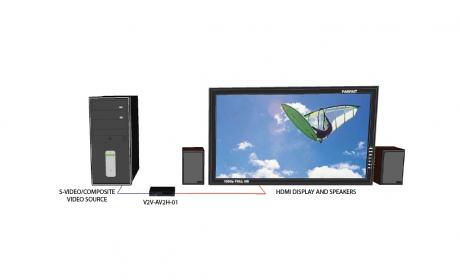 The V2V-AV2H-01 enables you to connect old players and other AV equipment to the newer HDMI format. It has the option to convert S-Video or composite video to HDMI.