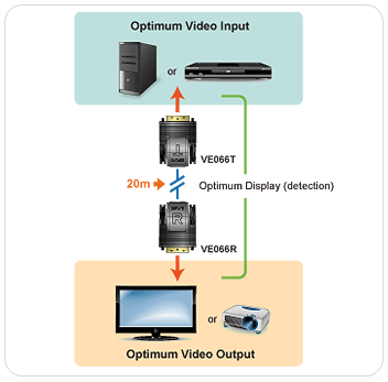 The VE066 Mini Cat 5 DVI Extender allows you to increase the distance between your DVI display and DVI source by up to 20 meters (65ft). using only one Cat 5e or Cat 6 cable. This provides a convenient way to replace heavy and expensive DVI cables.