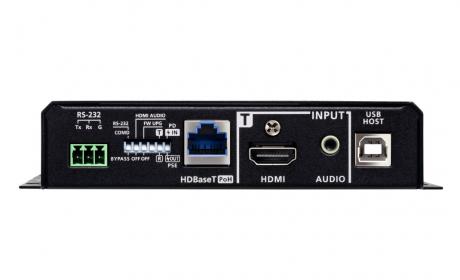 • Compliant with HDBaseT 3.0 standards – transmits high-quality video, full range IR, bi-directional RS-232, independent stereo audio and USB 2.0 signals channel bypass