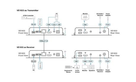 Aten VE1833 True 4K HDMI / USB HDBaseT 3.0 - Lite Transceiver with PoH (True 4K@40 m)