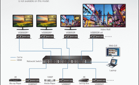 Engineered to meet today’s demands of large scale, multi-display, 1080p signal transmission, and designed to be easy to set up and operate, the VE8900T Video over IP Transmitter is an ideal product for a wide range of environments, such as trade shows, airports, university campuses, conference centers, and shopping centers.