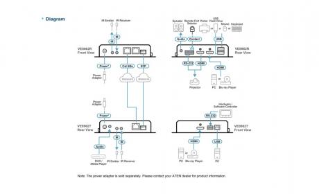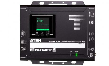 The ATEN VE8962 Video over IP Extender consists of a transmitter VE8962T and a receiver VE8962R that can transmit up to 4096 x 2160 @ 60 Hz (4:4:4) HDMI, audio, USB 2.0, IR, RS232 signals with ultra-low latency via a single Cat 5e/6 or fiber optic cable.