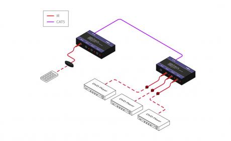 The HDC-IR range of products allow the extension of Infra Red control signals using single CAT5 UTP (category 5, unshielded twisted pair) cable. The HDC-IR is the first product for this application.