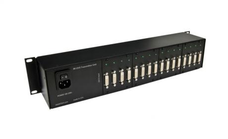 The RK-DVX200 is the ideal solution for extending DVI-D signals to remote locations up to 225 feet away. It is the ideal way to extend up to 16 workstation computers from one location to another location or various locations. It is fully compatible with Mac, PC and Linux standards. Up to 16 displays can be extended easily from a rack without the complication or expense of multiple extenders. Rather than buy multiple extenders for rack components, and having to find power strips or numerous power outlets for the adapters, the SmartAVI rack series of extenders allows for up to 16 inputs and 16 outputs from a single rack device. The extender comes in three configurations: four inputs and four outputs, eight inputs and eight outputs, and 16 inputs and 16 outputs. The extender can achieve the full output distance of 225 feet when using a Cat6 23AWG STP cable.