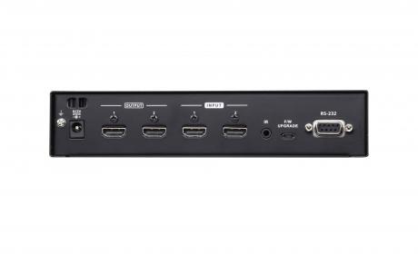 The remote control and convenient front panel push buttons allow you to efficiently cycle through HDMI source devices and displays, while the front panel LEDs indicate the source device for each display at a glance.