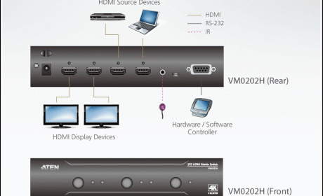 The Aten VM0202H is a 2 X 2 HDMI Matrix Switch that meets HDMI Specification features including 3D, Deep Color up to 12- bit, and data rates up to 10.2 Gbps. Engineered for the future trend of high-definition video switching, the VM0202H supports computer and video signals at resolutions up to 4K.