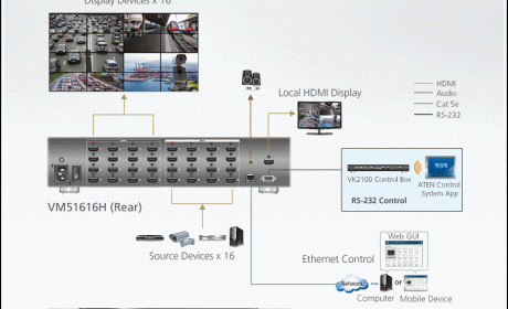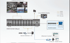 The VM51616H is an ideal solution for applications that require multiple HDMI displays with multiple HDMI sources to be conveniently delivered to multiple locations, such as railway stations, competition venues, casinos, control centers, conference rooms, logistics centers, security management, and more