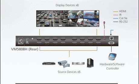 The Aten VM5808H 8 x 8 HDMI Matrix Switch is a distinct HDMI solution that offers an easy and affordable way to route any of 8 HDMI video sources to any of 8 HDMI displays, with a quick view of all port connections via the front panel LCD, RS232, IR, Push Button control with Ethernet connections