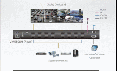 The VM5808H includes seamless switching that employs a FPGA matrix architecture that ensures continuous video streams, real-time control and stable signal transmissions. With a built in high-performance scaler, the VM5808H easily converts various input resolutions into various output display resolutions, giving viewers the best video and picture quality across all displays.