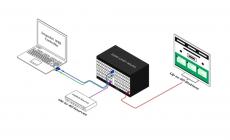 The HDR-UHD-40X40 is a matrix switch with up to 40 full UHD inputs and 40 outputs, an integrated converter and scaler. Compact, plug-and-play, and excellent for mid-sized displays between 40 screens with resolutions up to 4K (3840x2160 @ 24 Hz/25 Hz/30 Hz/50 Hz/60 Hz) Full UHD.