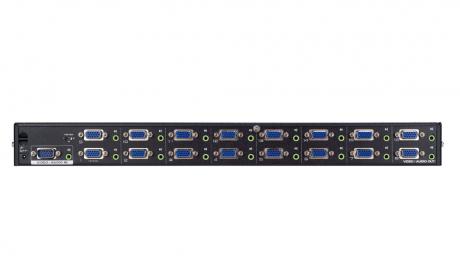 The Aten VS0116 16 Port VGA Video Splitter with Audio duplicates and enhances the video and audio signals from an input source (i.e. a computer) and routes them to up to 16 output devices (monitors, projectors, etc.)