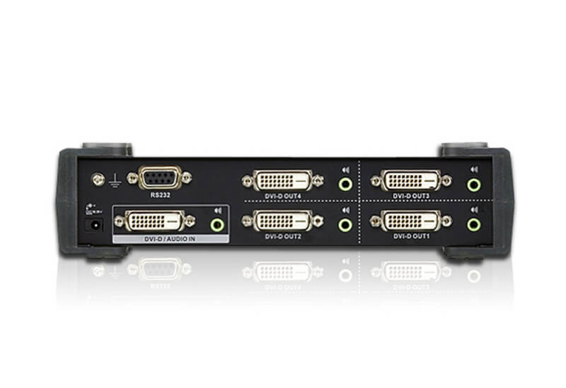 The Aten VS174 4-Port DVI Dual Link Splitter with Audio combines DVI quality video and audio, taking signals from an audio/ video source and replicating them to four audio/video outputs. This video splitter uses dual link technology, which offers high bandwidth capacity for added transmission power and faster refresh rates, thereby providing better video quality of viewing resolutions up to 2560 x 1600.