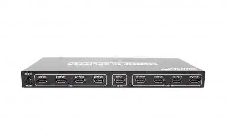 The HDS8P (V2) HDMI splitter gives users the ability to take a single HDMI input and re-route it to eight displays. With no loss of signal quality and a simple, hardware-only implementation, the HDS8P (V2) is the easiest and most cost-effective way to transmit stunning HD signal to eight displays simultaneously and instantly. There is no need for multiple source devices for multiple HD displays when using this handy splitter.
