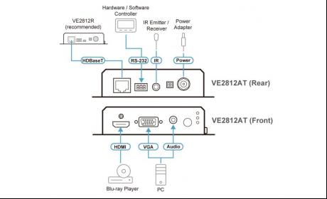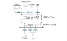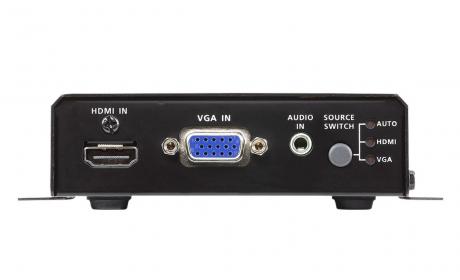 ATEN VE2812AT is a transmitter for sending VGA (with audio) and HDMI signals up to 100 m over a single Cat 5e/6/6a or ATEN 2L2910 Cat 6 cable.