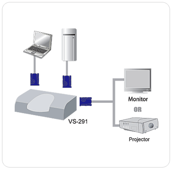 Aten VS291 2 port VGA Video Switch displays the output of two computers on a single monitor high resolution video up to 1920 x 1440.