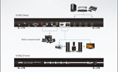 The Aten VS482 4 Port Dual View HDMI Switch offers an easy and affordable way to add HDMI capabilities to your home theater system by allowing you to switch easily between up to four HDMI A/V sources that are connected to up to two HDMI displays.