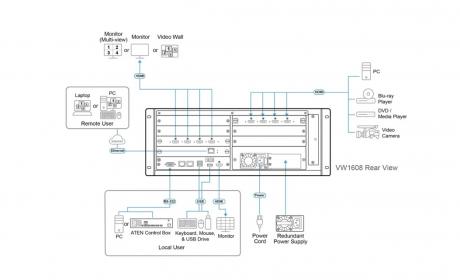 The VW1608 supports multiple control and monitor methods, including local HDMI output, RS‑232, Ethernet, front panel buttons, web GUI, Telnet, and SSH, to overcome geographical limitations.