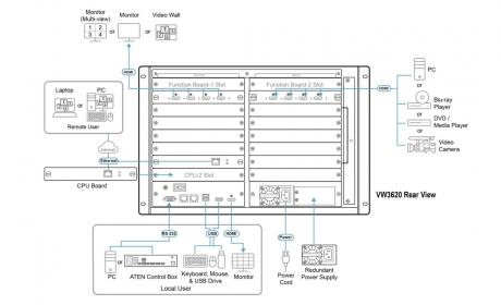 Purpose-built to meet the increasingly stringent system performance requirements in mission-critical applications, the VW3620 is a 7U, modular True 4K video wall processor with 7 input slots, 5 output slots, and 2 function board slots, which also work as input board slots, to support up to 36 input sources and 20 display terminals while being able to handle True 4K sources* without delay. Advanced 4K@60 4:4:4 scaling technology plus the signal processing capability allow the VW3620 to deliver astonishing, accurate True 4K imagery.