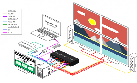 The EZWall-Plus 2x2 from SmartAVI is the perfect video wall solution for a wide variety of environments. With four single-link HDMI outputs, users can create an attractive and dynamic 2x2 video wall display.
