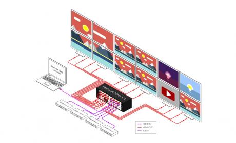The MXwall Pro V2 is a video wall processor and matrix switch with up to 12 HDMI outputs. Compact, plug-and-play, and excellent for mid-sized video wall displays between 4-12 screens with resolutions up to 1080p (1920x1080 @ 60Hz) Full HD