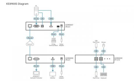 Both of the transmitter and receiver are providing video resolutions up to 1920 x 1200 @ 60 Hz and offer flawless and lossless video quality with extremely low latency. The extender also supports Virtual Media function and RS-232 serial commands. In addition to a DC power jack, the KE8900ST transmitter includes an extra DC terminal block for convenient installation.