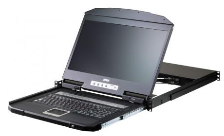 The ATEN CL3108 / CL3116 LCD KVM Switch offers a space-saving, streamlined approach to KVM switch technology by integrating a keyboard, 18.5" LED-backlit LCD monitor, and a touchpad in a 1U rackmountable sliding housing. The short-depth design maximizes space utility for equipping rack-mounting devices in narrow spaces. In addition, its exclusive LED illumination light provides users with proper visibility when working in low-light conditions.