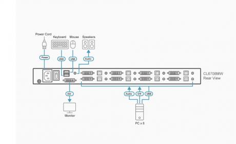 The CL6708MW brings additional versatility to ATEN’s line of LCD KVM Switches with its native DVI compatibility. Building on ATEN’s renowned, space-saving approach to KVM switches – integrating an LCD panel, full keyboard, and touchpad into a streamlined, 1U housing – the CL6708MW is a highly-scalable LCD KVM switch which features the ability to control up to 64 computers by cascading 8 additional CS1768 8-port KVM switches